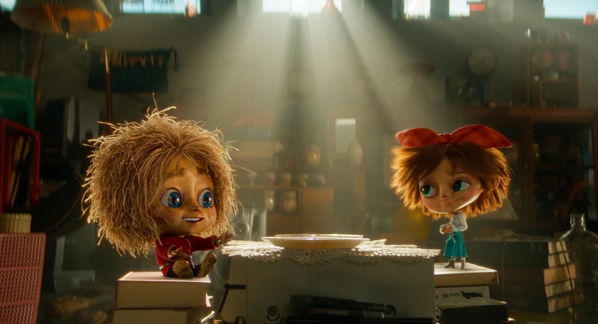 Дети, Маша и Ваня, впервые увидели Кузю, когда он appeared из-за шкафа, оставляя за собой след из золотой пыльцы. Маша, девочка с косами и любопытными глазами, сразу подбежала к нему, а Ваня, более сдержанный, остался на расстоянии, наблюдая. Кузя, с его обычной весёлостью, начал показывать им свои фокусы делал так, что игрушки двигались сами собой, а в воздухе появлялись цветные пузыри. Дети были в восторге, и скоро их страх перед неизвестным сменился дружбой с необычным гостем. Эта сцена, полная радости и детского восторга, стала началом их совместных приключений.