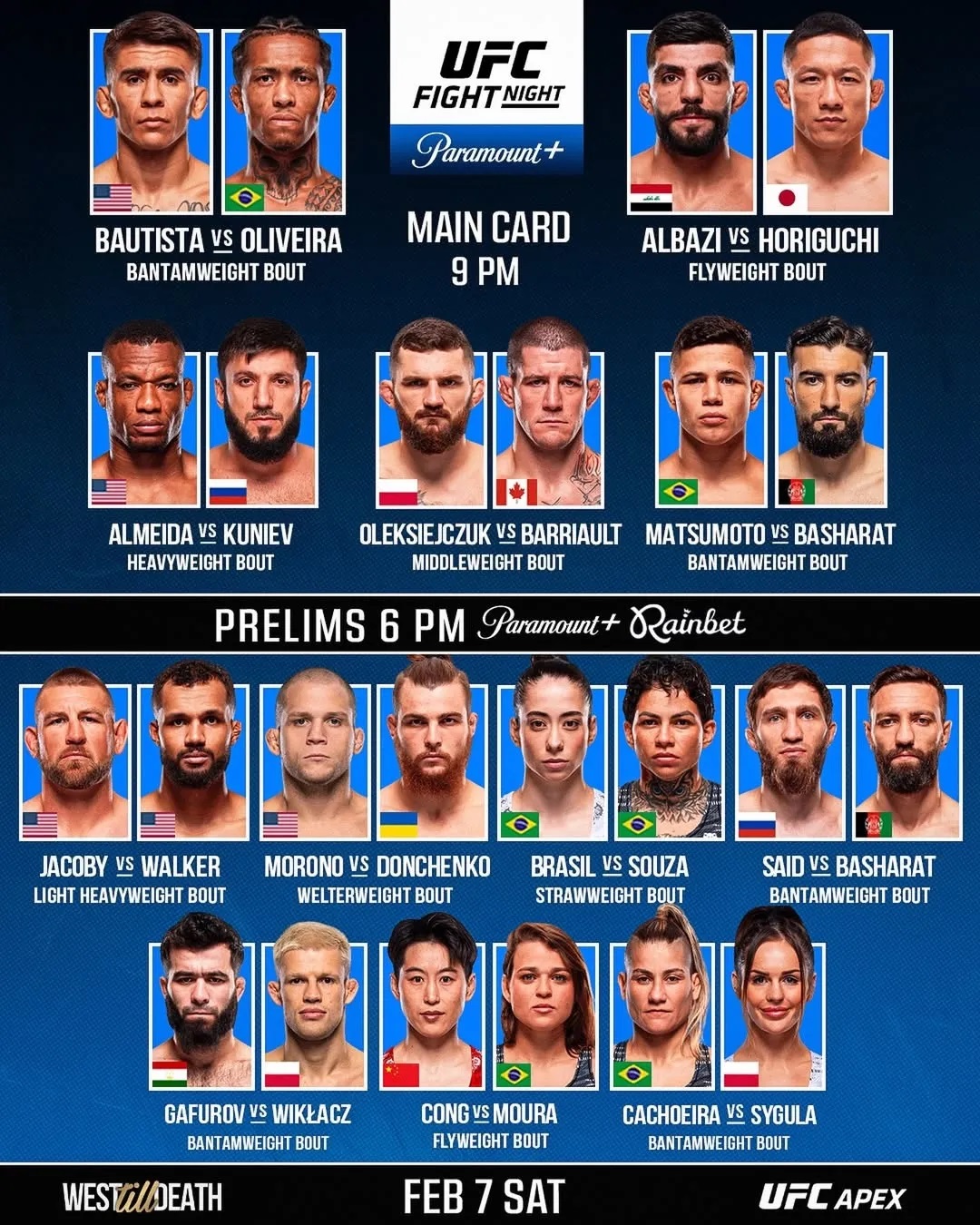 В центральном бою вечера встретятся два титана, чьи имена знают даже те, кто далек от мира MMA. Один мастер стойки, чьи удары похожи на молнии, другой мастер борцовской техники, способный затянуть соперника в клещи его хвата. Каждый из них придет на арену с одной целью доказать, что он лучший. Но UFC Vegas 113 это не только главный бой. Здесь каждая бойцовская пара готова показать зрелище, которое запомнится надолго.